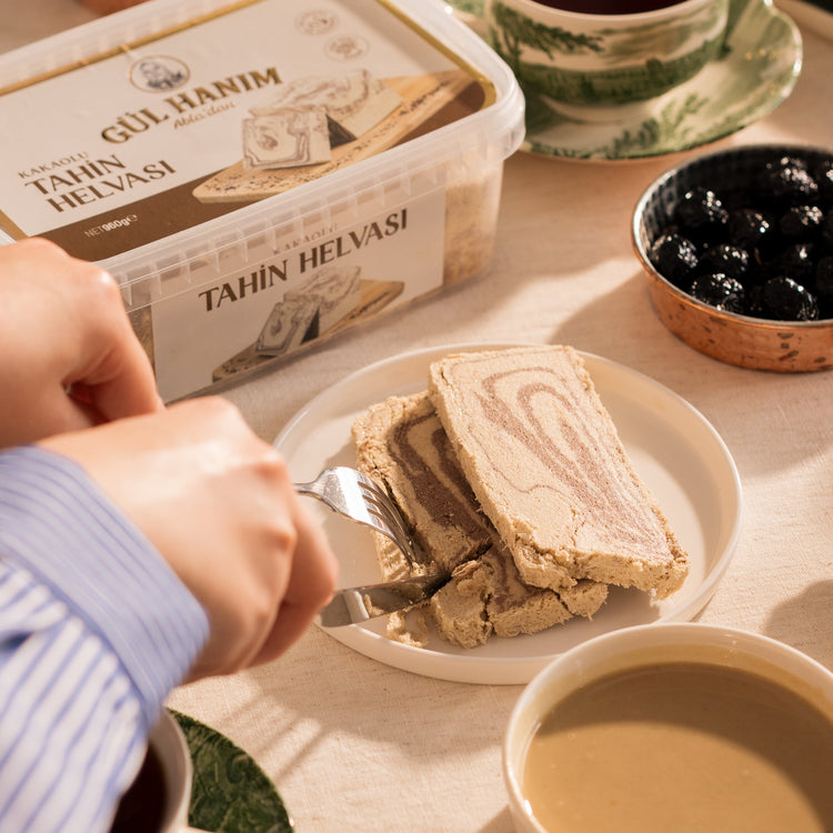 Taş değirmende özenle çekilmiş tahinin aroması, çöğen suyunun geleneksel dokusu ve helva ustalığının klasik yorumu bu lezzette bir araya gelir. Susamın kendine özgü tadı, dengeli kıvamı ve ustalıkla yoğrulmuş yapısı helvanın karakterini oluşturur.